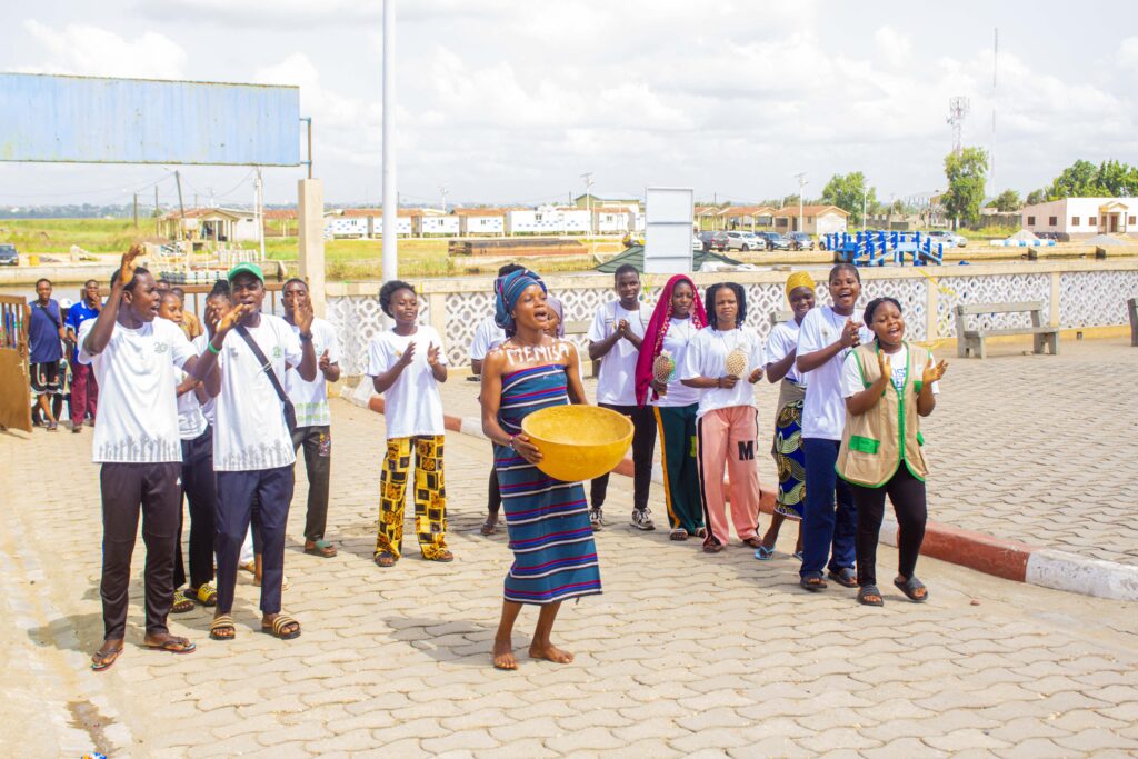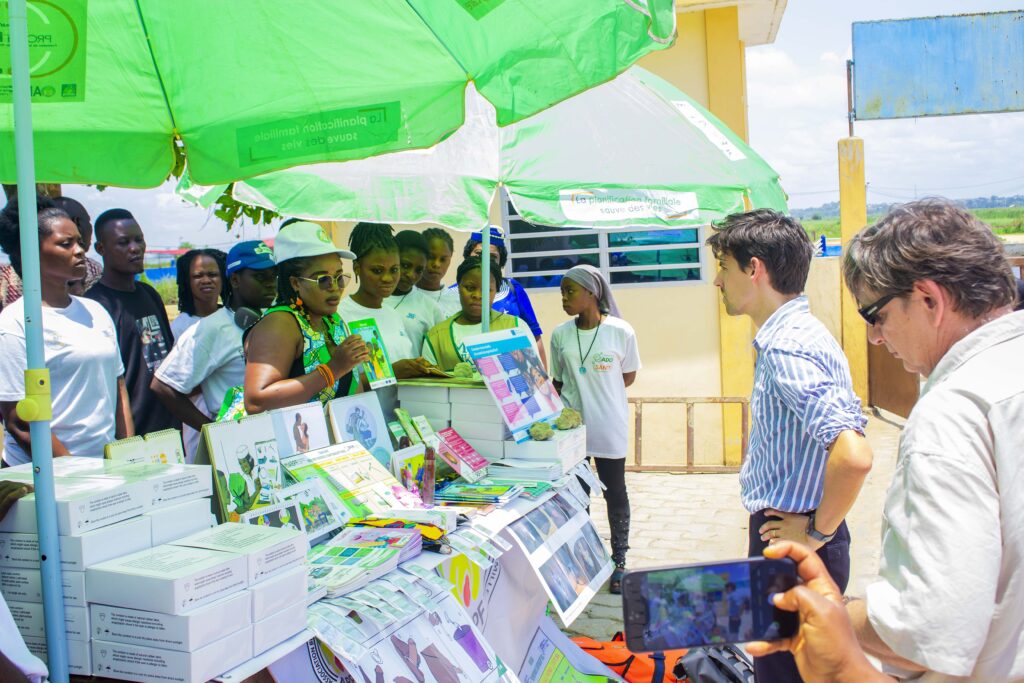 Avant de rejoindre les eaux, la délégation a fait escale au stand tenu par les jeunes. Dans une ambiance dynamique, les pairs éducateurs ont exposé le matériel IEC (Information, Éducation, Communication) utilisé lors de leurs sorties. Ils ont longuement expliqué leurs stratégies de terrain pour aborder les thématiques sensibles en milieu lacustre, démontrant ainsi la pertinence des outils financés par la Coopération belge et adaptés aux réalités de Sô-Ava.