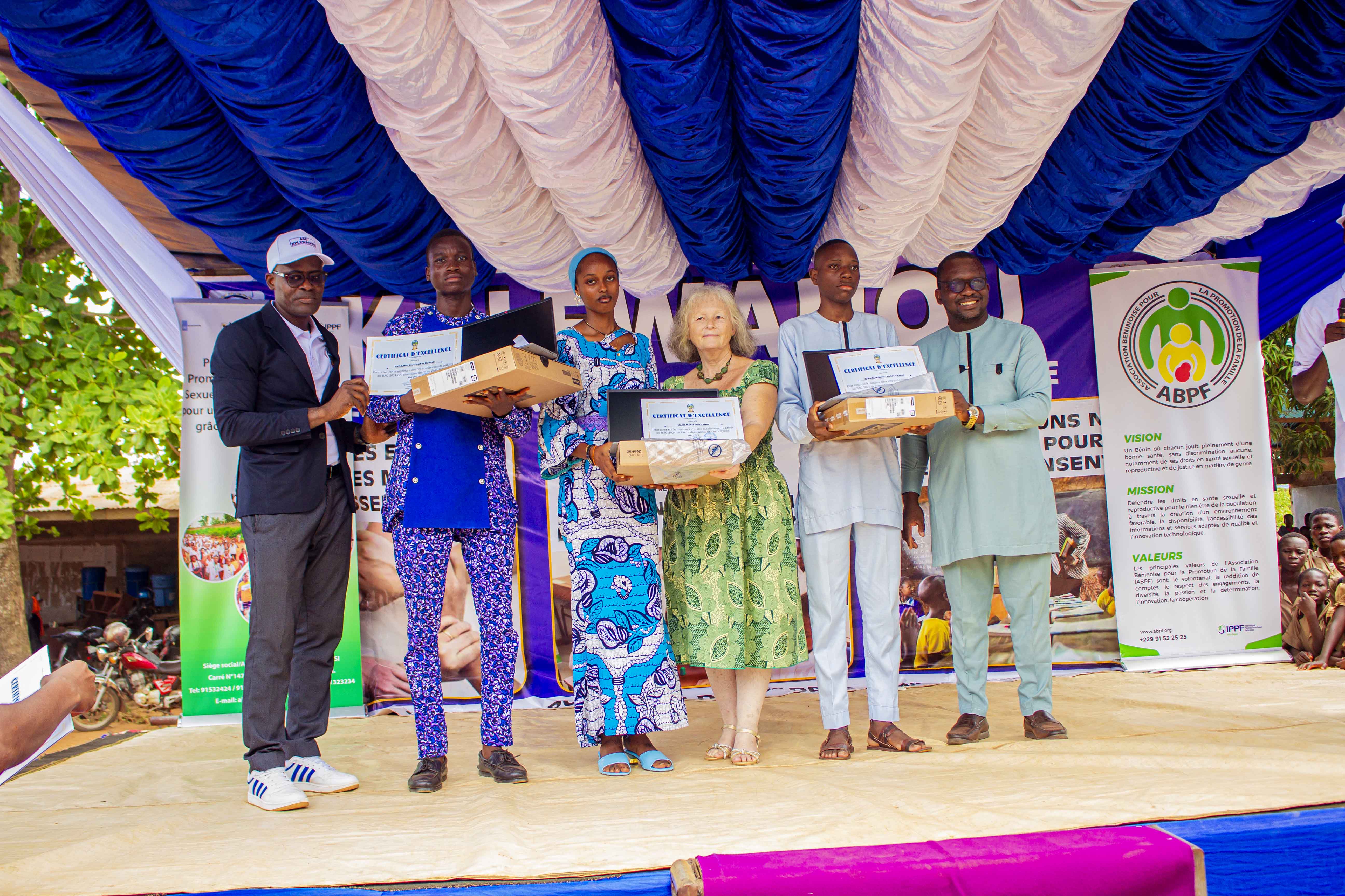 L'Association Béninoise pour la Promotion de la Famille (ABPF) a apporté un soutien notable à cet événement porteur d'espoi. Monsieur Wenceslas Roger TOGNISSO, représentant l’ABPF et prenant la parole au nom de l'ensemble des partenaires, a adressé ses plus vives félicitations aux brillants récipiendaires. Il a souligné l'importance cruciale de l'éducation comme pilier du développement individuel et collectif, réaffirmant l'engagement de l'ABPF à soutenir les initiatives qui investissent dans l'avenir de la jeunesse béninoise.