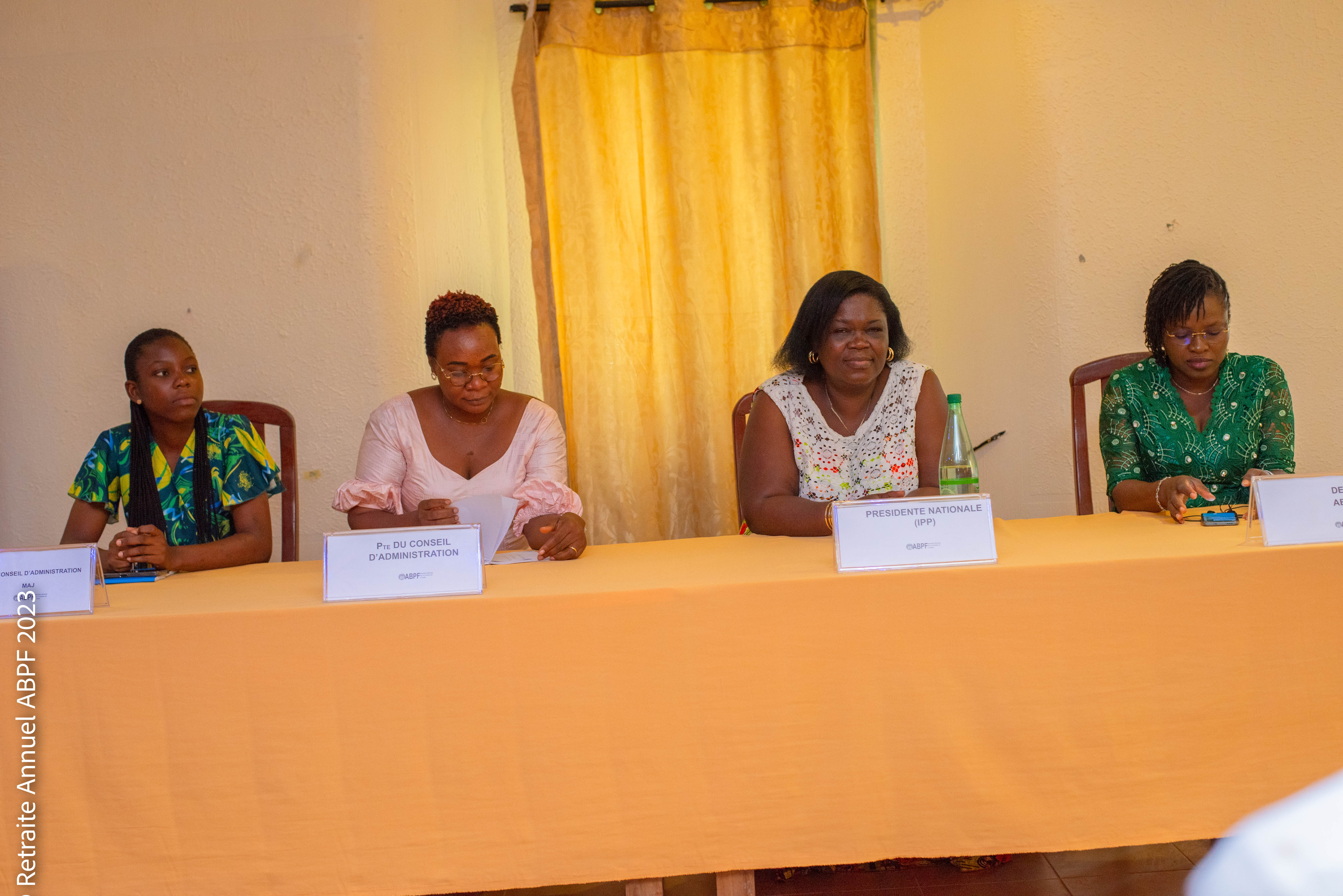 La deuxième journée de cette retraite a été remplie d'émotions et de partages. Elle a débuté par l'accueil et la présentation des membres du Conseil d'Administration conduits par Mme Fleur Olive OUSSOUGOUE, des membres honoraires des conseils régionaux de l'ABPF, du Comité de Nomination et de la Gouvernance, ainsi que du Conseil d'Administration du MAJ Bénin.