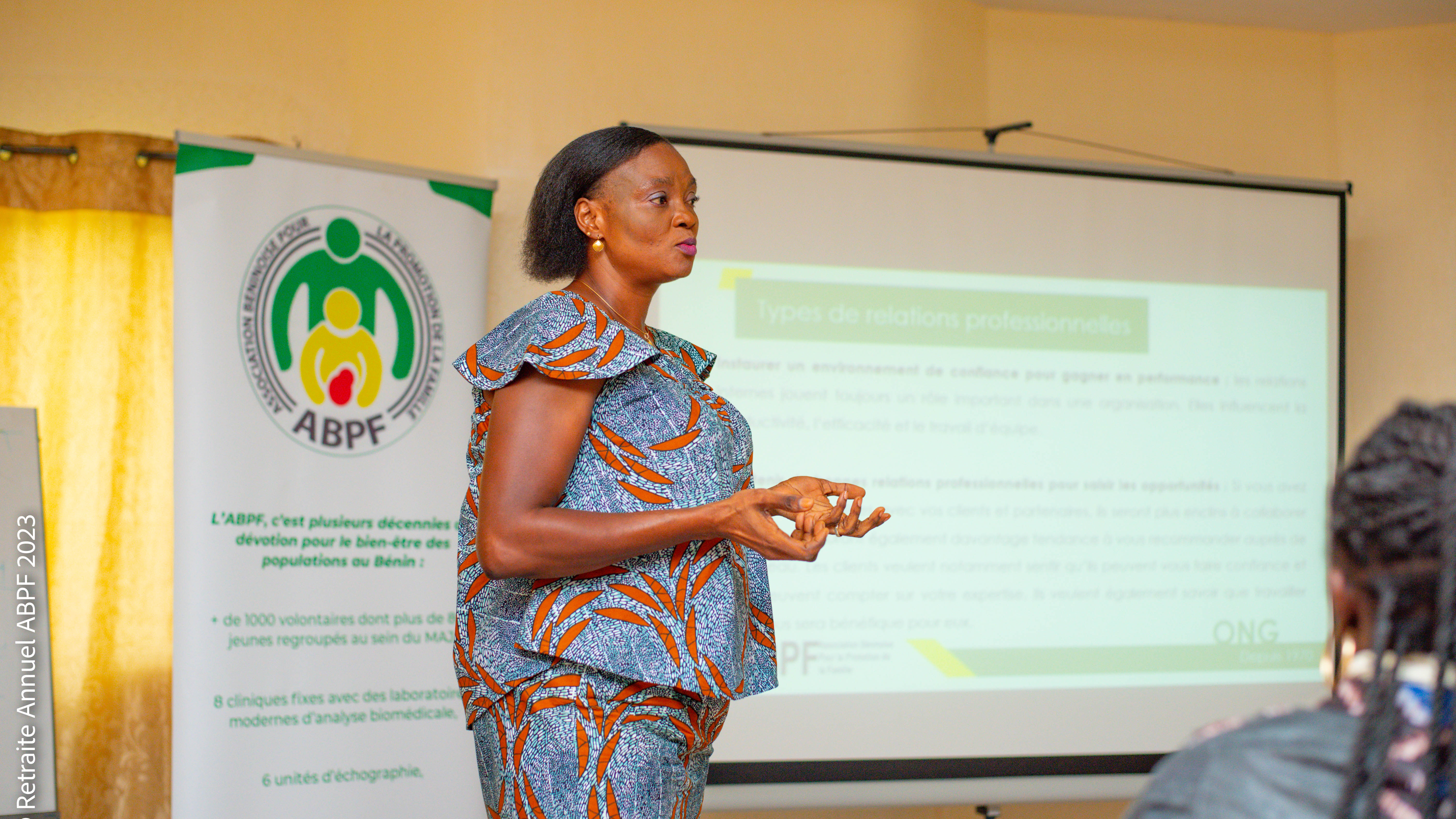 La Présidente du Conseil Exécutif National Mme Judith MAFFON GBEHINTO a présenté les membres du Conseil d'Administration de l'ABPF, majoritairement jeunes et ayant pour la plupart un parcours au sein du Mouvement d'Action des Jeunes du Bénin, réaffirmant son engagement en tant que volontaire de l'Association à soutenir la nouvelle équipe dirigeante pour les trois prochaines années.